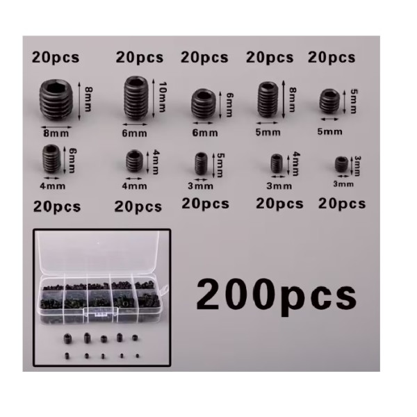 Ακέφαλες Βίδες Αλλεν Black Σετ 200 τεμαχίων