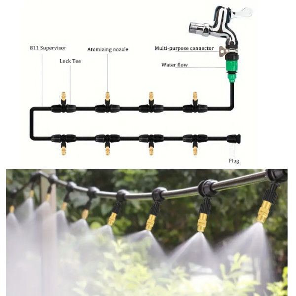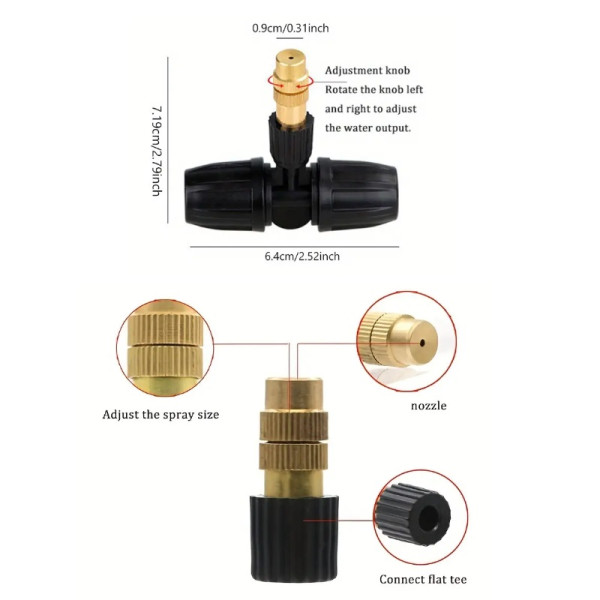 5. Πεδίο εφαρμογής: Το ακροφύσιο ψεκασμού είναι κατάλληλο για τον σωλήνα του συστήματος άρδευσης κήπου 8/11mm.