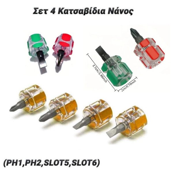 Το σετ κατσαβιδιών περιλαμβάνει τέσσερα κατσαβίδια τύπου νάνος.